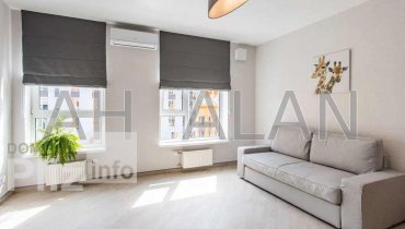 Аренда шикарной квартиры в ЖК " Комфорт Таун", по адресу: улица Березнева 14 Б. Квартира расположена на 4 этаже 9 этажного дома, общей площадью 46 м2. Планировка: кухня-студия, отдельная спальня, санузел с ванн...
