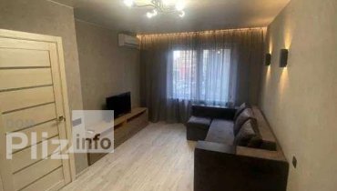 Кухня компактна, але зручна Ванна, кухня та коридор плитка Кімната паркет Натяжна стеля з двома режимами освітлення (тепле/денне) Меблі та зручності Один великий диван Диван-малютка Шафа Плазмовий телевізор з W...